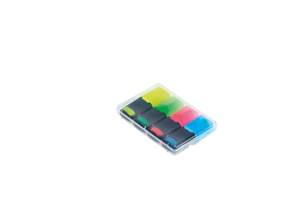 Набор жидких текстовых выделителей, состоящий из 4 маркеров LIQEO HIGHLIGHTER MINI в прозрачной пластиковой упаковке. Стандартные цвета текстовых выделителей: желтый, зеленый, пурпурный и синий.