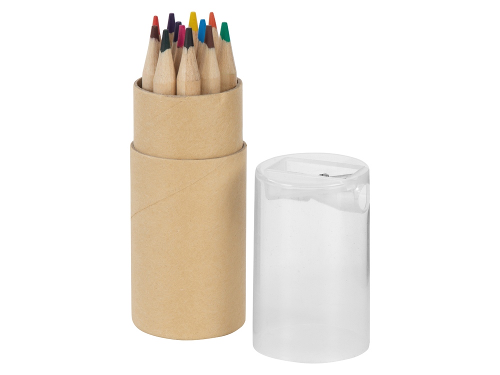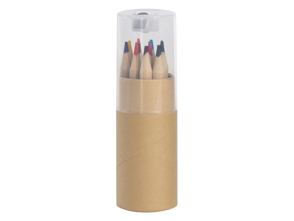 Набор из 12 маленьких карандашей в картонном стакане с точилкой.