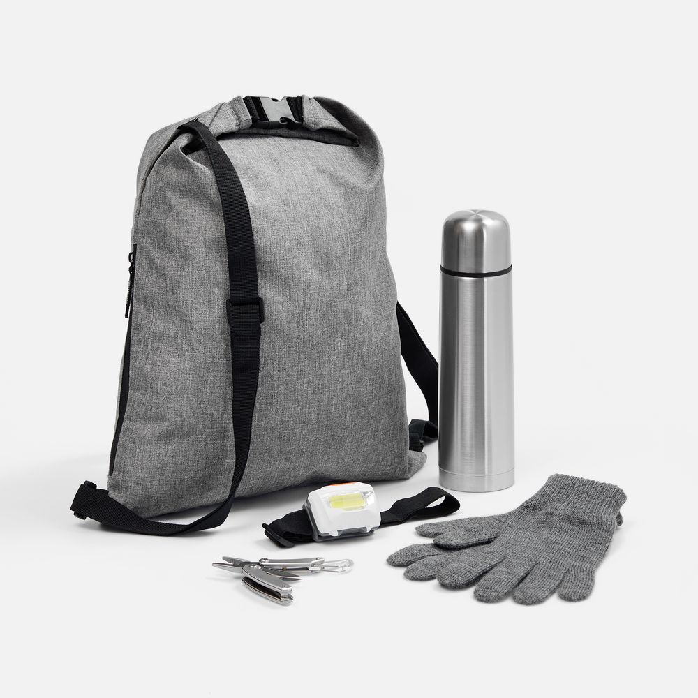 | Материал | перчатки - 50% шерсть, 50% акрил; фонарь - пластик; мультитул - нержавеющая сталь, алюминий; термос - нержавеющая сталь, 304 внутри, 201 снаружи; пластик; рюкзак - полиэстер, 300D |
