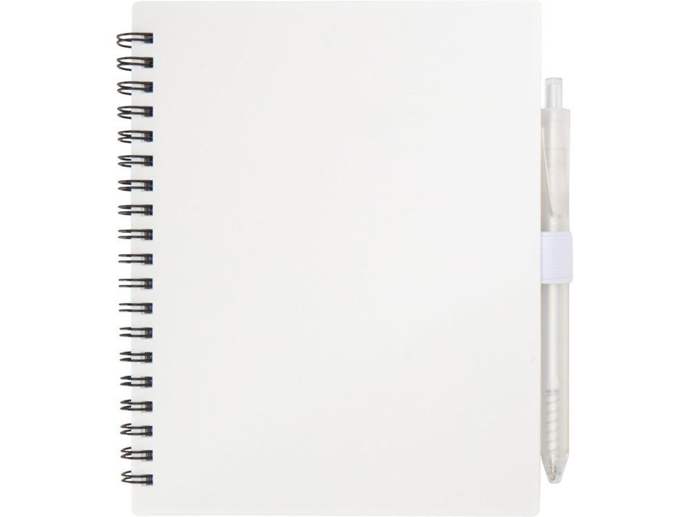 Набор Niove из блокнота из переработанного пластика в мягкой обложке и шариковой ручки (синие чернила) - Белый купить оптом и в розницу с нанесением логотипа в Воронеже