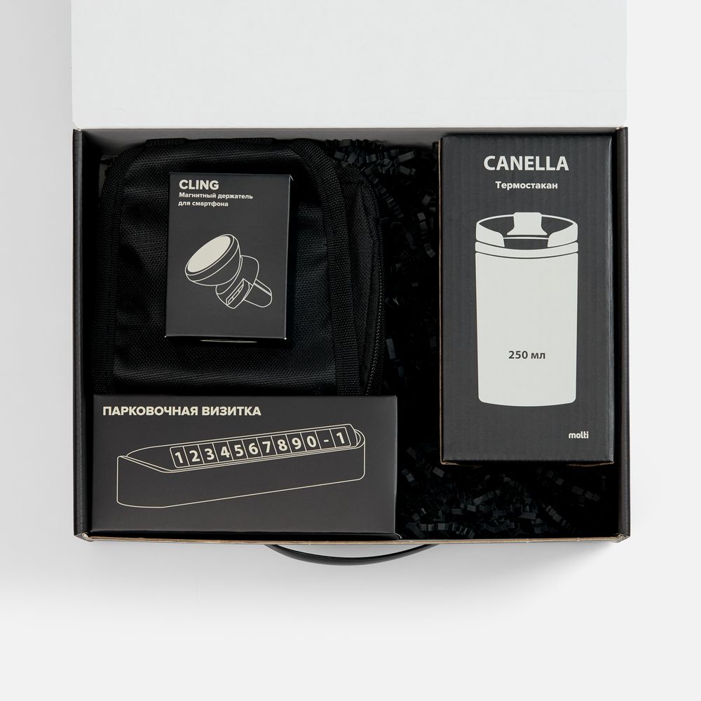 | Материал | внутренняя стенка и крышка стакана - пластик; внешняя стенка - нержавеющая сталь; магнитный держатель - АБС-пластик; парковочная визитка - пластик; органайзер - полиэстер 100%, плотность 600D; оксфорд; коробка - микрогофрокартон |
