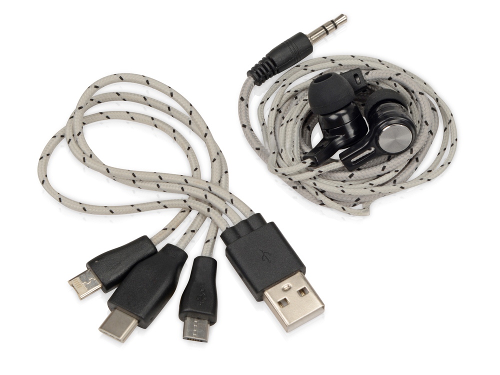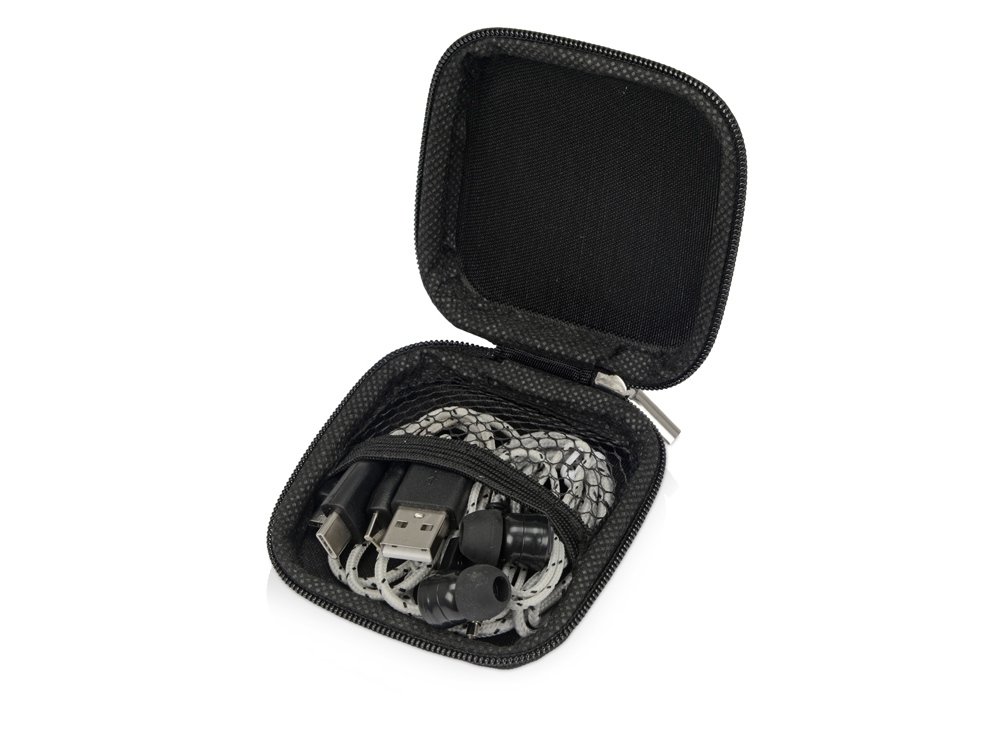 Набор In motion — оптимальный бизнес-подарок для подвижных, активных людей. В набор входят проводные наушники с минималистичным дизайном и зарядный кабель 3 в 1 с разъемами micro USB, Lightning (для устройств Apple) и USB-C. Яркий цвет кабеля не позволит ему затеряться среди других вещей. Набор поставляется в компактном чехле на молнии.