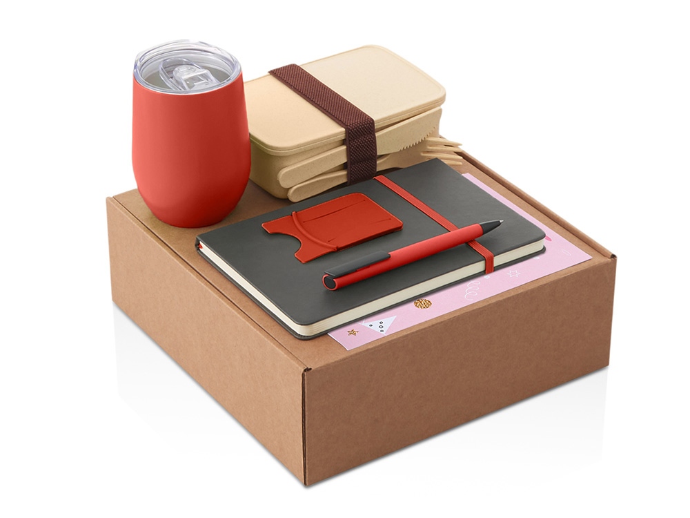 Функциональный и сбалансированный набор для сотрудников, партнёров или клиентов — отлично подойдёт для welcome-боксов, тимбилдингов, внутренних мероприятий и корпоративных праздников. Состав набора: • Блокнот — удобный формат для записей, брифов и ежедневных задач • Ручка — классическая, с необычным слайдером и приятной soft-touch поверхностью делает письмо более комфортным. • Универсальная термокружка Sense понравится как любителям горячих напитков, так и холодных, ведь она сохраняет напитки горячими в течение 6 часов, а холодными - 12 часов. Подходит для офиса и поездок • Ланчбокс — компактный и легкий, для здоровых перекусов и экономии времени. Для дополнительной надежности ланчбокс перехвачен упругой резинкой, которая помогает удерживать крышку на месте. Эта же резинка служит фиксатором для столового набора, который идет в комплекте — вилки, ножа и ложки. • Силиконовый картхолдер для телефона с держателем крепится на заднюю панель смартфона и заменяет кошелёк в повседневной суете. Удобно для пропусков и карт. • Открытка — элемент персонализации, в комплект можно вложить индивидуальное послание • Универсальный ложемент обеспечивает аккуратное размещение и надёжную фиксацию элементов, делая набор эффектным и презентабельным при вручении. • Дополнительное преимущество — набор доступен в конструкторе наборов: компоненты можно заменить и собрать индивидуальный вариант под стиль компании или вкусы получателя. • Готовое решение для корпоративных подарков • Все элементы функциональны и актуальны для повседневного использования