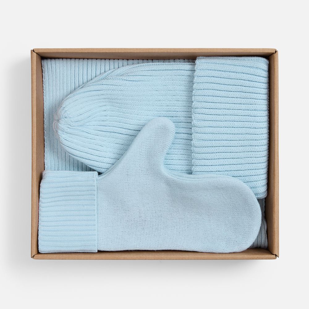 В набор входит удобный шарф с технологичным отверстием для быстрого завязывания, шапка с двойным отворотом и теплые двухслойные варежки с широкой манжетой. Все изделия связаны из акриловой пряжи, отличаются практичностью и элегантной простотой.