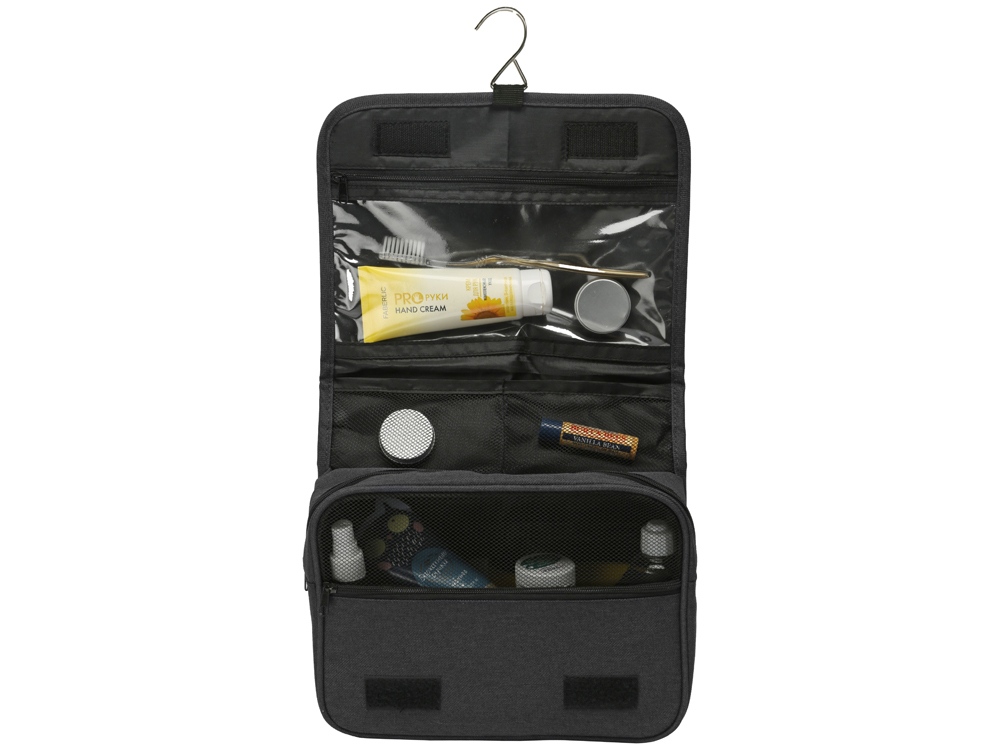 Несессер Planar оснащен металлическим крючком для подвешивания, который в сложенном виде убирается внутрь и не будет вам мешать. Для переноски несессер имеет ручку снаружи, а еще вы найдете плоский вместительный карман на его задней стороне. Клапан несессера закрывается на липучки и имеет три кармана — большой на молнии из прозрачного материала, который легко моется, даже в случае, если флакон изнутри разгерметизировался, и два из сетки, куда можно положить необходимые мелочи и которые удобнее использовать в висящем виде. Основное отделение несессера — объемное, с сетчатой вставкой для обзора, на молнии, имеет также наружный непрозрачный карман на молнии. Внутри этого отделения — два боковых объемных кармана под флаконы или баночки и два на стенке, а также есть укрепляющая накладка на дно, которую при необходимости можно отодвинуть для экономии места. Несессер является частью линейки Planar, благодаря чему его можно включать в состав сетов дорожных аксессуаров в едином стиле. - легко и быстро раскладывается - прозрачный карман из ПВХ для флаконов с жидкостями, который легко очистить - выполнен в стиле серии Planar, можно комбинировать с другими изделиями серии - множество разноплановых карманов под разное содержимое и цели - крючок для подвешивания - вместительный