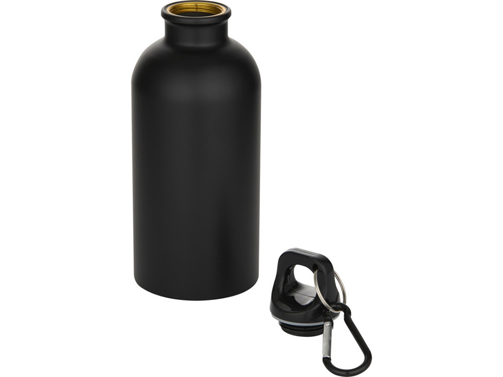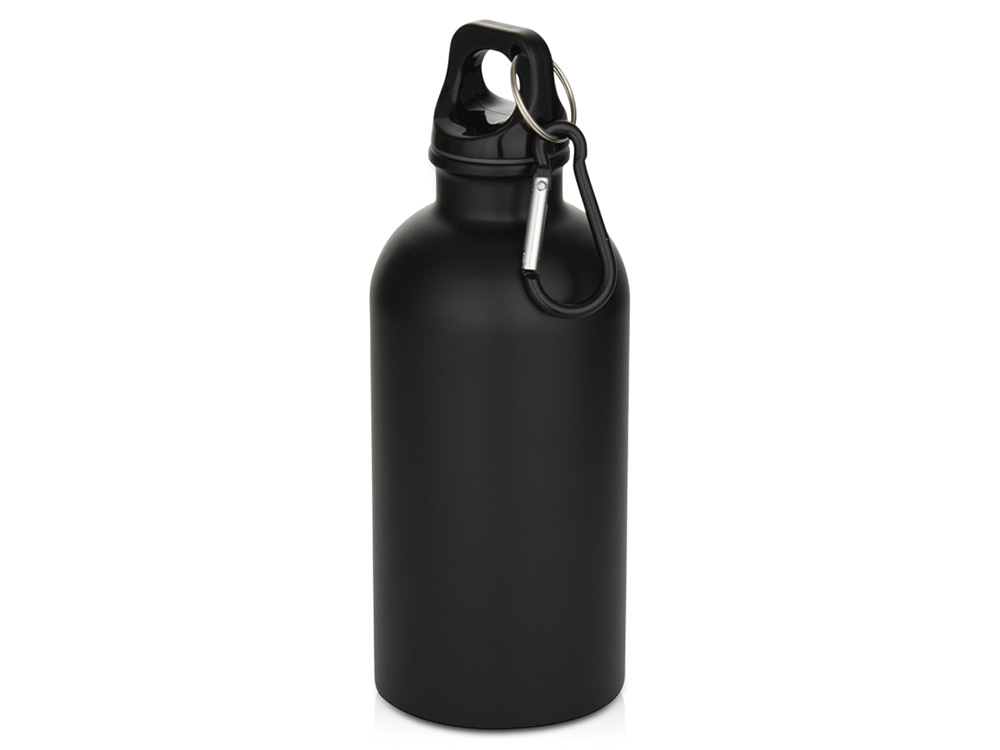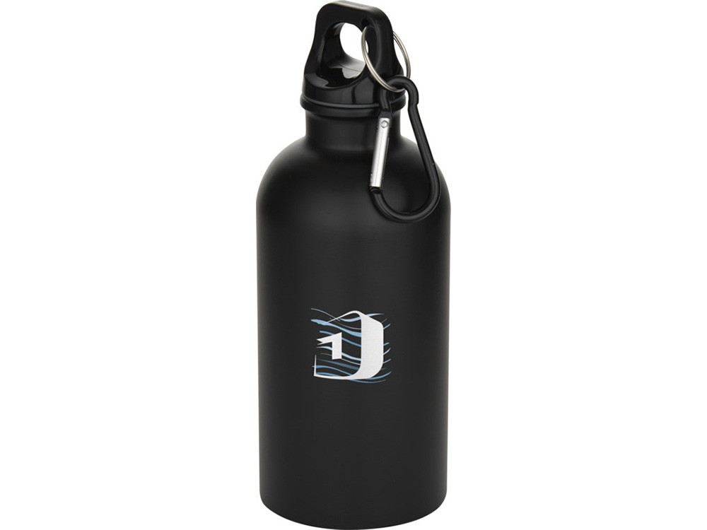 Oregon одностенная бутылка для воды с карабином, изготовленная из нержавеющей стали, сертифицированной по стандарту RCS, объемом 400 мл - Черный купить оптом и в розницу с нанесением логотипа в Воронеже