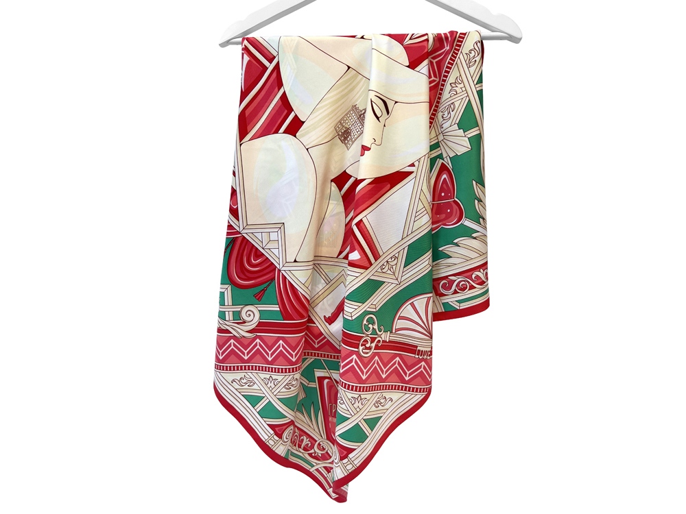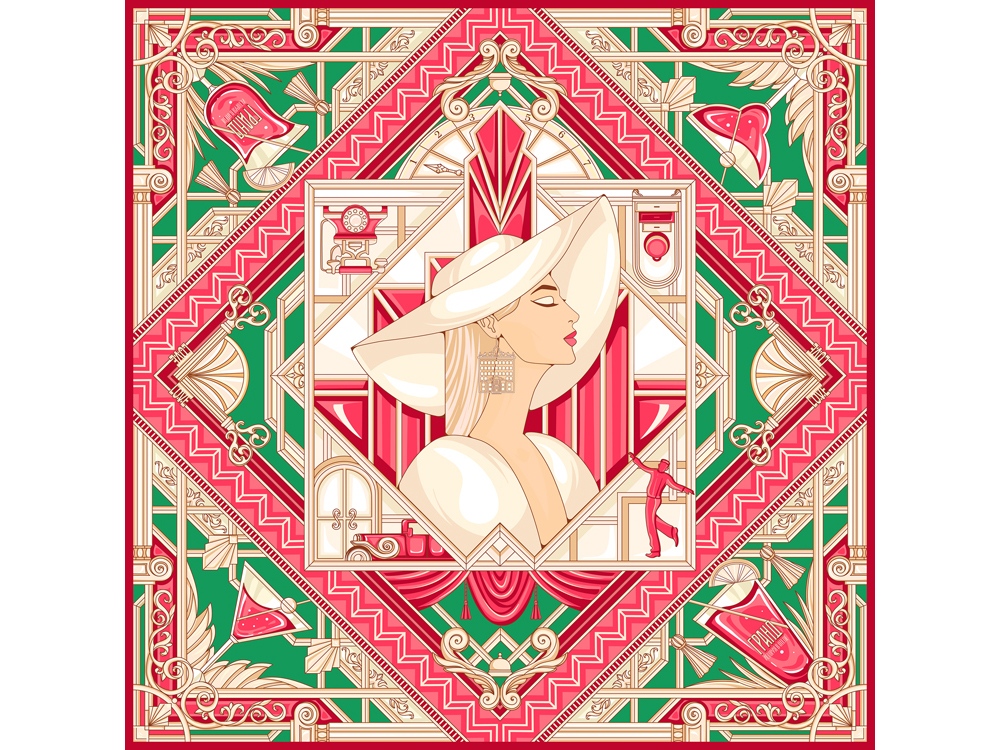Коллекционный платок ГРАНД создан дизайнером Ниной Ручкиной специально ко дню премьеры грандиозного танцевального шоу История в отеле в лучших традициях бродвейских постановок, которое выходит впервые на российской сцене. Остроумное и зажигатлеьное шоу впервые соберет на одной сцене 26 чемпионов России по танцам-16 чемпионов мира, которые расскажут зрителю самые разные отельные истории: от девичника перед свадьбой в баре до романтического свидания на крыше отеля. Каждая комната таит в себе секреты, полные чувств, эмоций, драйва, музыки и, конечно же, танцев. Автор идеи и ген.продюсер Денис Тагинцев