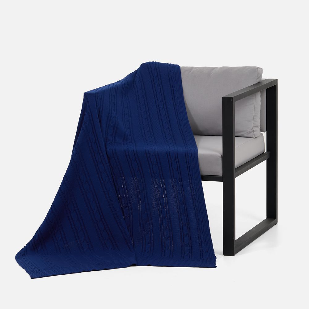 Тонкое переплетение вертикальных кос-жгутов создает благородную фактуру, где простота линий встречается с изысканной текстурой. Плед из мягкого акрила сохраняет тепло, оставаясь удивительно легким и воздушным.