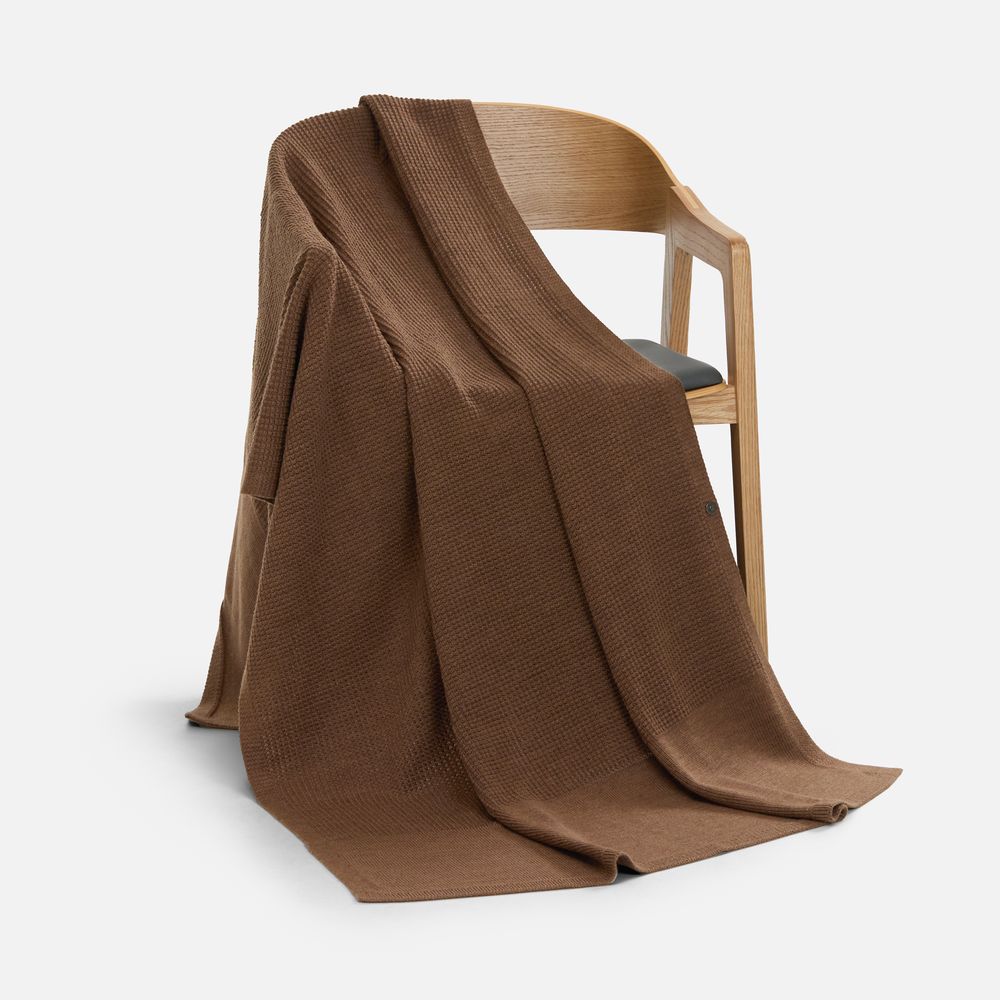 Плед Voyage соткан из мягкого сочетания шерсти и акрила — нежный, теплый и невесомый, он словно создан для уютных вечеров. Кнопка позволяет превратить плед в элегантную накидку, когда воздух становится прохладнее.