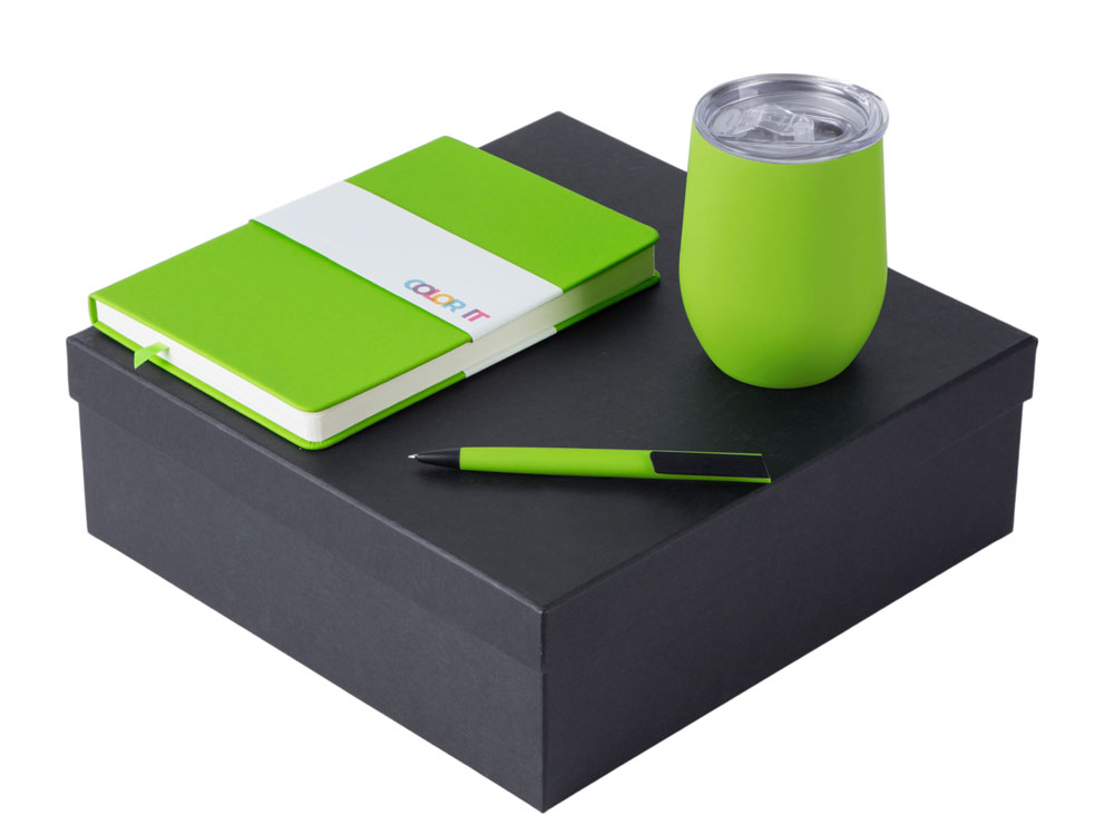 Color It — линейка, в которую входят хиты мерча в десяти самых популярных цветах. Еще никогда собрать сет под свой брендбук не было так просто. Широкая цветовая палитра серии позволяет создать идеальный набор в едином оттенке Pantone. Все товары имеют тактильно приятное покрытие софт-тач. Сет поставляется в коробке: мы продумали все, включая подарочную упаковку, за вас — осталось нанести лого! Термокружка оснащена крышкой-слайдером с силиконовым кольцом. Благодаря вакуумной изоляции и двойным стенкам, она сохраняет напитки горячими в течение 6 часов, а холодными - 12 часов. Бизнес-блокнот в твёрдой обложке имеет ляссе в тон обложки и среза. Бумажный блок разлинован в линейку и выполнен из бумаги, полученной из древесины из специальных восполняемых лесных ресурсов, имеет сертификат FSC. Тонкое письмо ручки обеспечивается пишущим узлом с толщиной письма 0,5 мм с нажимным механизмом. Ручка имеет сменный стержень, поэтому такой мерч прослужит дольше обычной одноразовой ручки, долго напоминая о вас клиентам. - объём термокружки: 370 мл; - блокнот А5 128 листов; - ручка с необычным слайдером; - подарочная упаковка из картона, оклеенного дизайнерской бумагой уже включена в набор.