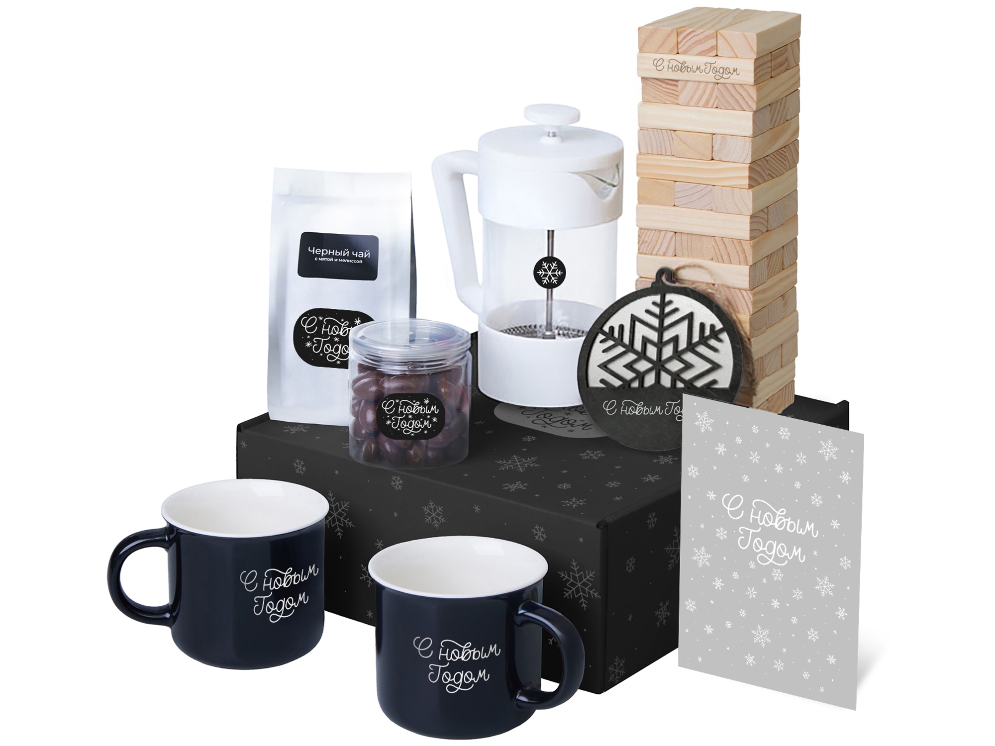 | Материал товара | кружка - костяной фарфор; френч-пресс - боросиликатное стекло, нержавеющая сталь, пластик; игра - дерево сосны, хлопок; подвеска - дерево; открытка - бумага; мешок - нетканый материал (спанбонд) |