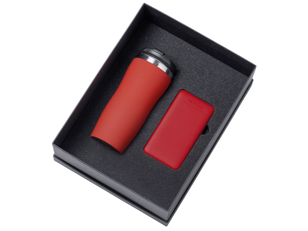 Подарочный набор c вакуумной термокружкой и повербанком С2, красный