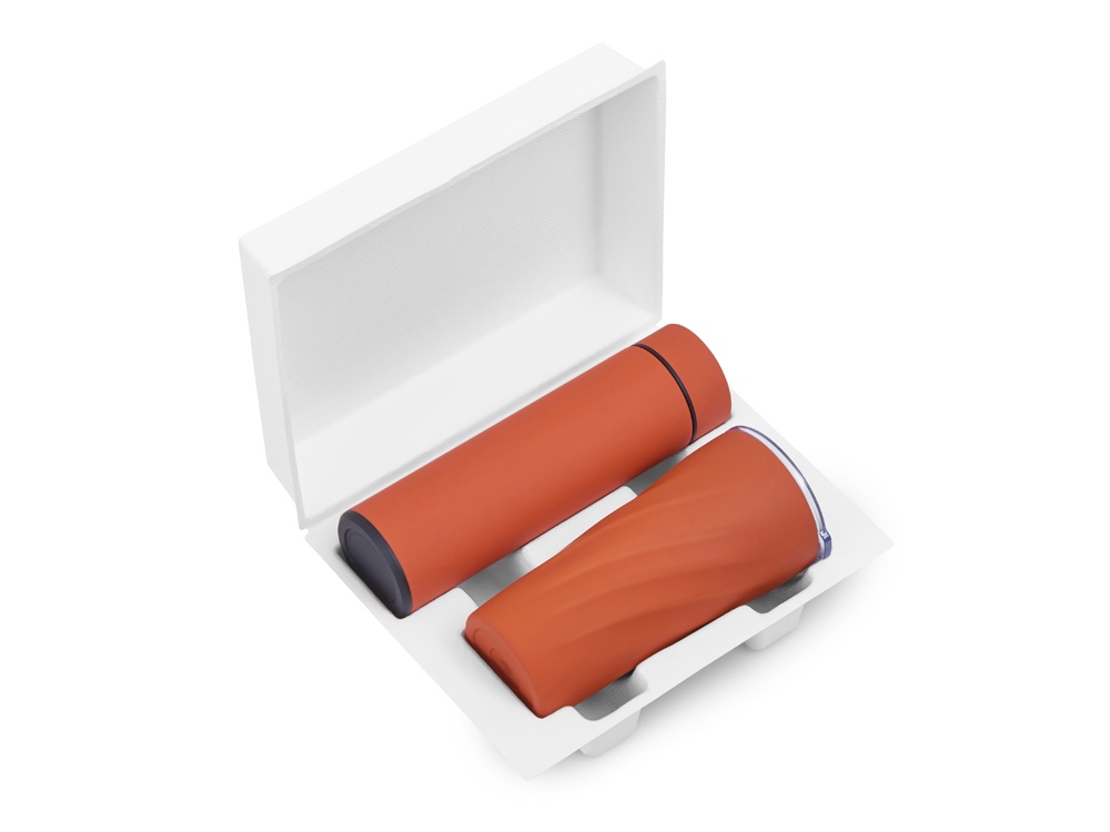 Подарочный набор FAMILY с термосом и термокружкой, оранжевый купить оптом и в розницу с нанесением логотипа в Воронеже