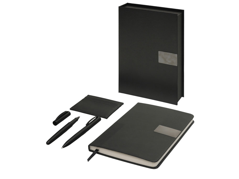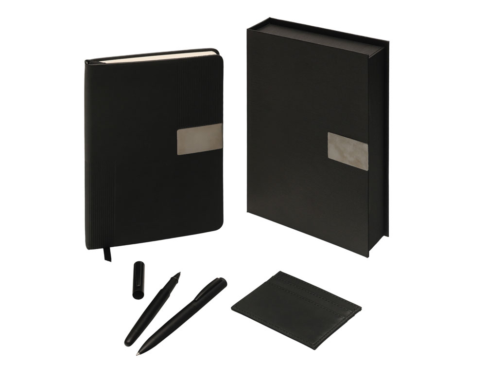 Подарочный набор Goethe с блокнотом А5, 2-мя ручками и картхолдером, черный купить оптом и в розницу с нанесением логотипа в Воронеже