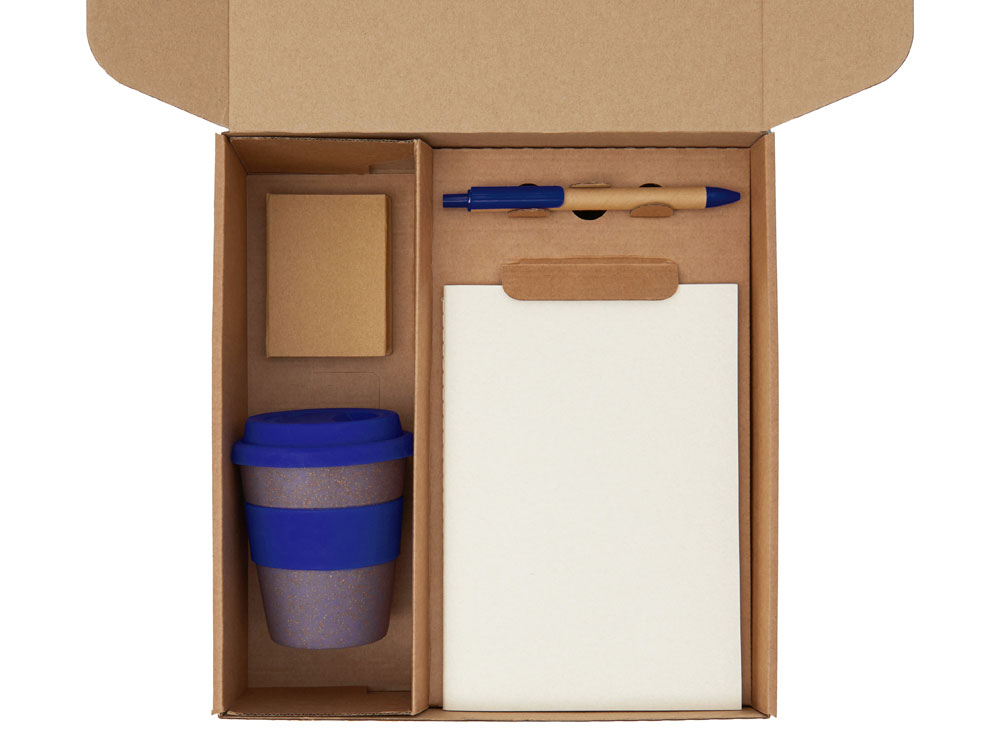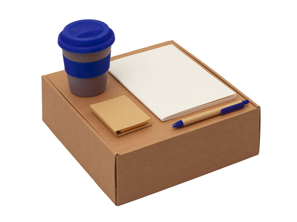 | Материал товара | блокнот- бумага из переработанных тетра-паков, ручка- картон, пластик, стакан- 50% бамбуковое волокно, 50% полипропилен, коробка- картон |