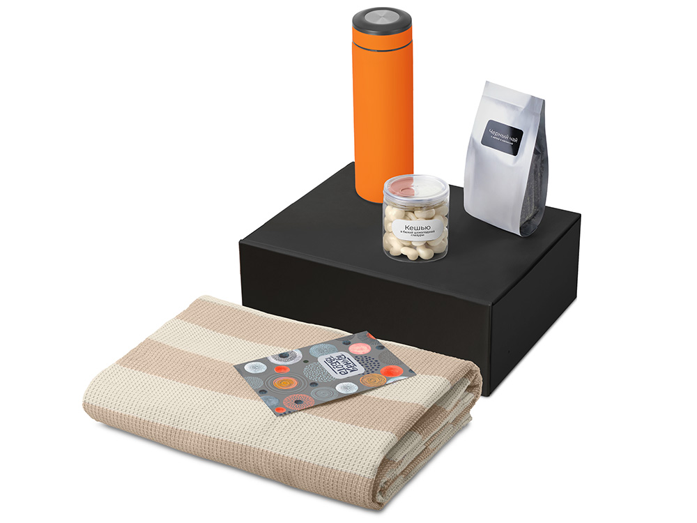 | Материал товара | плед - 100% хлопок, термос - нержавеющая сталь с покрытием софт-тач, чай - пластик, мешок - нетканый материал (спанбонд), коробка - картон |