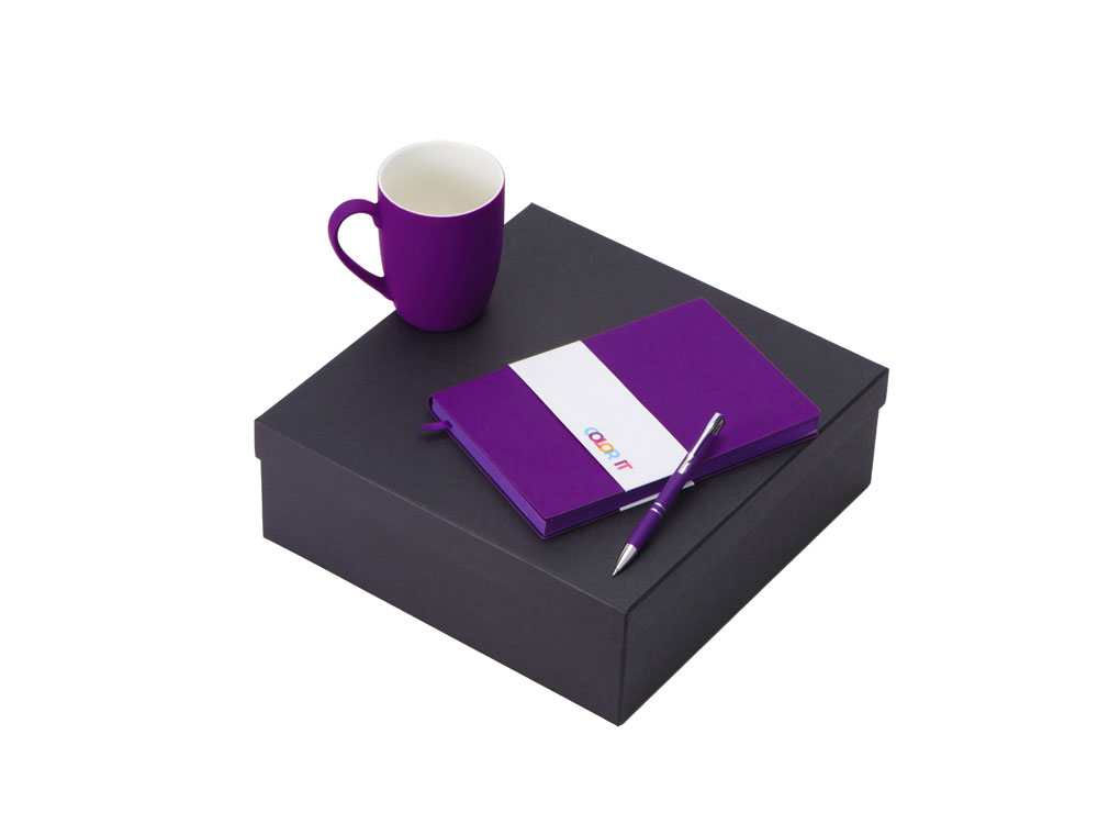 Color It — линейка, в которую входят хиты мерча в десяти самых популярных цветах. Еще никогда собрать сет под свой брендбук не было так просто. Широкая цветовая палитра серии позволяет создать идеальный набор в едином оттенке Pantone. Все товары имеют тактильно приятное покрытие софт-тач. Сет поставляется в коробке: мы продумали все, включая подарочную упаковку, за вас — осталось нанести лого! Фарфоровая кружка с удобной ручкой брендируется методом гравировки, поэтому нанесение будет долговечным и не сотрётся при мытье кружки. Бизнес-блокнот в твёрдой обложке имеет ляссе в тон обложки и среза. Бумажный блок разлинован в линейку и выполнен из бумаги, полученной из древесины из специальных восполняемых лесных ресурсов, имеет сертификат FSC. Шариковая ручка имеет сменный стержень, поэтому такой мерч прослужит дольше обычной одноразовой ручки, долго напоминая о вас клиентам. - объём кружки: 360 мл; - блокнот А5 128 листов; - ручка с необычным слайдером; - подарочная упаковка из картона, оклеенного дизайнерской бумагой уже включена в набор