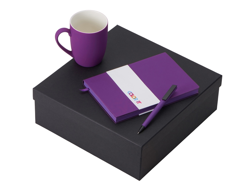 Color It — линейка, в которую входят хиты мерча в десяти самых популярных цветах. Еще никогда собрать сет под свой брендбук не было так просто. Широкая цветовая палитра серии позволяет создать идеальный набор в едином оттенке Pantone. Все товары имеют тактильно приятное покрытие софт-тач. Сет поставляется в коробке: мы продумали все, включая подарочную упаковку, за вас — осталось нанести лого! Фарфоровая кружка с удобной ручкой брендируется методом гравировки, поэтому нанесение будет долговечным и не сотрётся при мытье кружки. Бизнес-блокнот в твёрдой обложке имеет ляссе в тон обложки и среза. Бумажный блок разлинован в линейку и выполнен из бумаги, полученной из древесины из специальных восполняемых лесных ресурсов, имеет сертификат FSC. Тонкое письмо ручки обеспечивается пишущим узлом с толщиной письма 0,5 мм с нажимным механизмом. Ручка имеет сменный стержень, поэтому такой мерч прослужит дольше обычной одноразовой ручки, долго напоминая о вас клиентам. - объём кружки: 360 мл; - блокнот А5 128 листов; - ручка с необычным слайдером; - подарочная упаковка из картона, оклеенного дизайнерской бумагой уже включена в набор