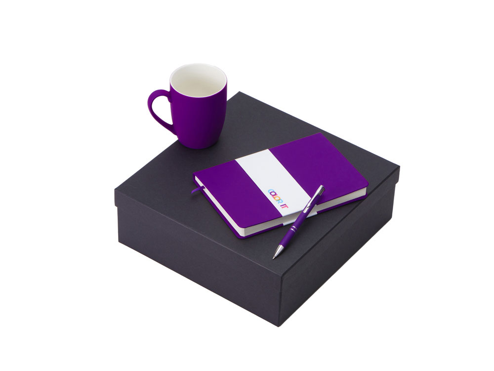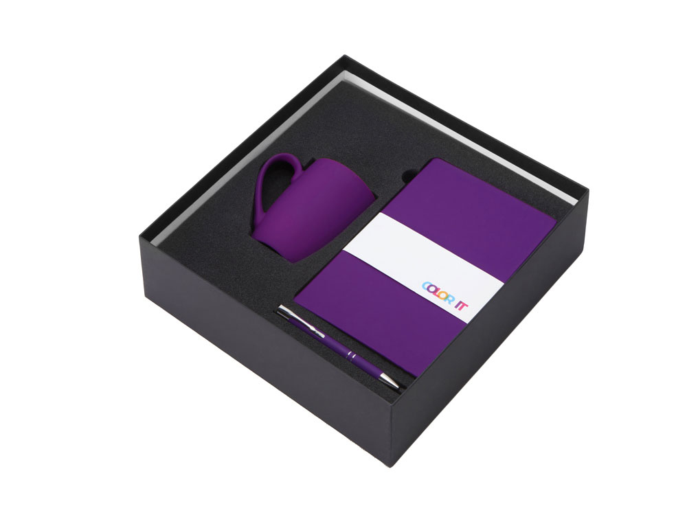 Color It — линейка, в которую входят хиты мерча в десяти самых популярных цветах. Еще никогда собрать сет под свой брендбук не было так просто. Широкая цветовая палитра серии позволяет создать идеальный набор в едином оттенке Pantone. Все товары имеют тактильно приятное покрытие софт-тач. Сет поставляется в коробке: мы продумали все, включая подарочную упаковку, за вас — осталось нанести лого! Фарфоровая кружка с удобной ручкой брендируется методом гравировки, поэтому нанесение будет долговечным и не сотрётся при мытье кружки. Бизнес-блокнот в твёрдой обложке имеет ляссе в тон обложки и среза. Бумажный блок разлинован в линейку и выполнен из бумаги, полученной из древесины из специальных восполняемых лесных ресурсов, имеет сертификат FSC. Шариковая ручка имеет сменный стержень, поэтому такой мерч прослужит дольше обычной одноразовой ручки, долго напоминая о вас клиентам. - объём кружки: 360 мл; - блокнот А5 128 листов; - ручка с необычным слайдером; - подарочная упаковка из картона, оклеенного дизайнерской бумагой уже включена в набор