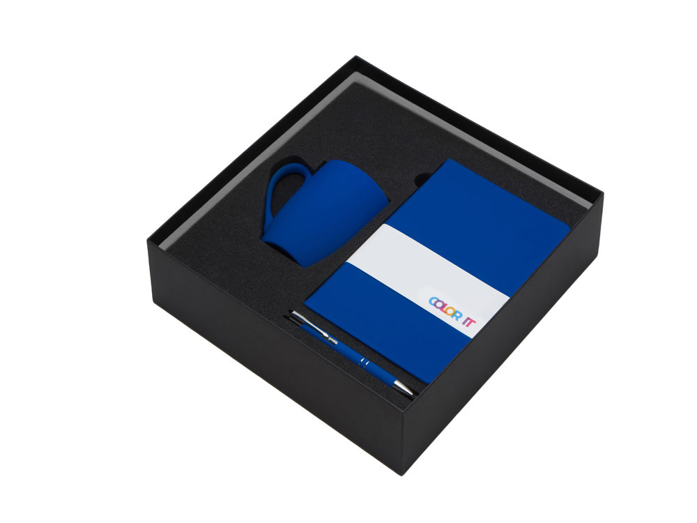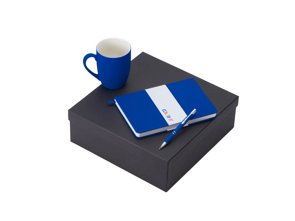 Color It — линейка, в которую входят хиты мерча в десяти самых популярных цветах. Еще никогда собрать сет под свой брендбук не было так просто. Широкая цветовая палитра серии позволяет создать идеальный набор в едином оттенке Pantone. Все товары имеют тактильно приятное покрытие софт-тач. Сет поставляется в коробке: мы продумали все, включая подарочную упаковку, за вас — осталось нанести лого! Фарфоровая кружка с удобной ручкой брендируется методом гравировки, поэтому нанесение будет долговечным и не сотрётся при мытье кружки. Бизнес-блокнот в твёрдой обложке имеет ляссе в тон обложки и среза. Бумажный блок разлинован в линейку и выполнен из бумаги, полученной из древесины из специальных восполняемых лесных ресурсов, имеет сертификат FSC. Шариковая ручка имеет сменный стержень, поэтому такой мерч прослужит дольше обычной одноразовой ручки, долго напоминая о вас клиентам. - объём кружки: 300 мл; - блокнот А5 128 листов; - ручка с необычным слайдером; - подарочная упаковка из картона, оклеенного дизайнерской бумагой уже включена в набор