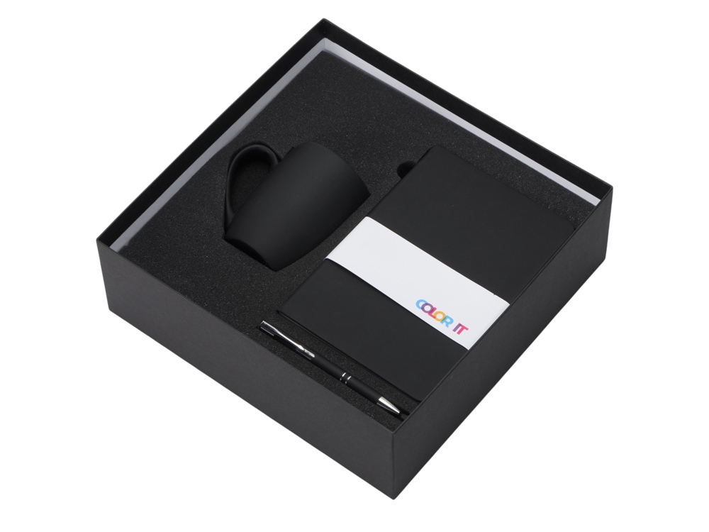 Color It — линейка, в которую входят хиты мерча в десяти самых популярных цветах. Еще никогда собрать сет под свой брендбук не было так просто. Широкая цветовая палитра серии позволяет создать идеальный набор в едином оттенке Pantone. Все товары имеют тактильно приятное покрытие софт-тач. Сет поставляется в коробке: мы продумали все, включая подарочную упаковку, за вас — осталось нанести лого! Фарфоровая кружка с удобной ручкой брендируется методом гравировки, поэтому нанесение будет долговечным и не сотрётся при мытье кружки. Бизнес-блокнот в твёрдой обложке имеет ляссе в тон обложки и среза. Бумажный блок разлинован в линейку и выполнен из бумаги, полученной из древесины из специальных восполняемых лесных ресурсов, имеет сертификат FSC. Шариковая ручка имеет сменный стержень, поэтому такой мерч прослужит дольше обычной одноразовой ручки, долго напоминая о вас клиентам. - объём кружки: 300 мл; - блокнот А5 128 листов; - ручка с необычным слайдером; - подарочная упаковка из картона, оклеенного дизайнерской бумагой уже включена в набор
