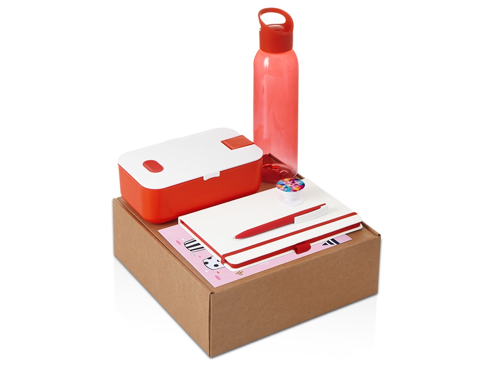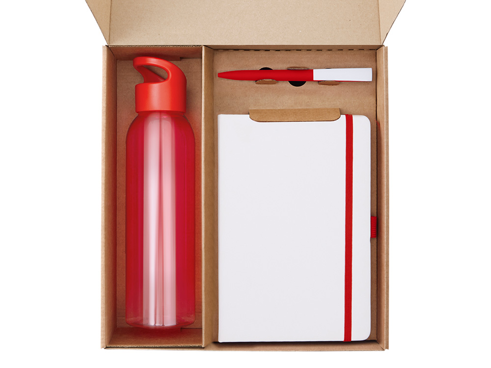 Подарочный набор с бутылкой для воды. блокнотом, ручкой и ланчбоксом, красный