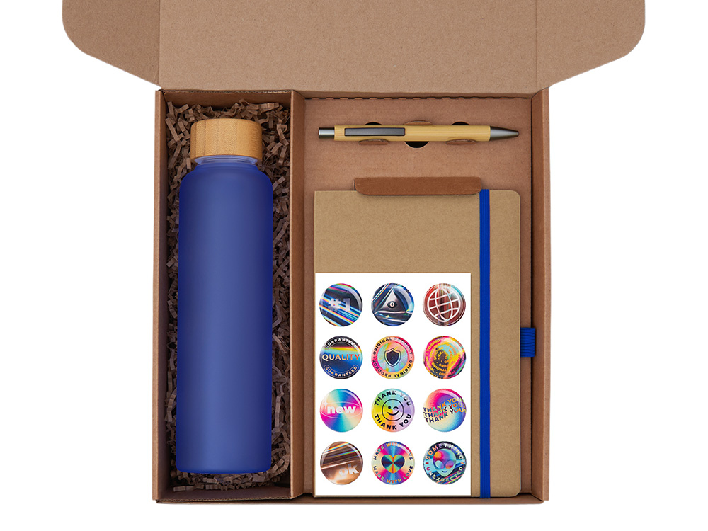 | Материал товара | бутылка - боросиликатное стекло, бамбук, блокнот - картон, бумага, ручка - бамбук, пластик, подставка - бамбук, наполнитель - бумага, стикеры - смола, коробка - картон |
