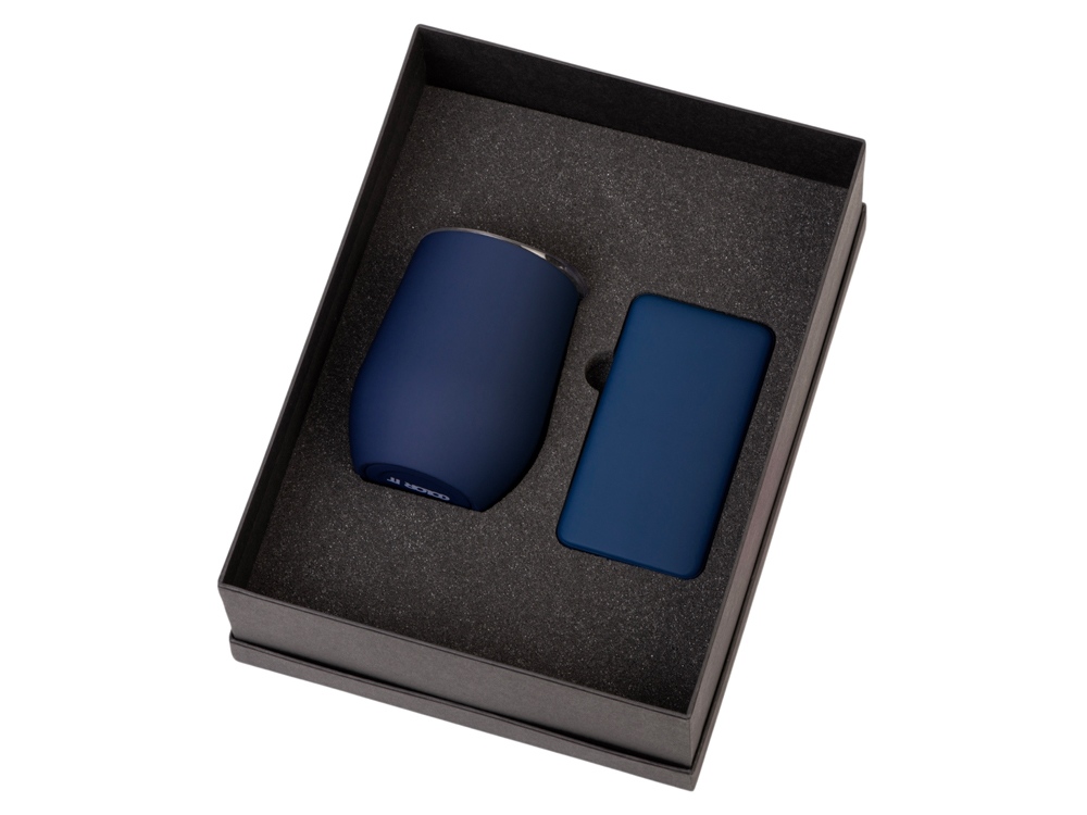 Подарочный набор с термокружкой и повербанком С1, 5000 mAh, темно-синий