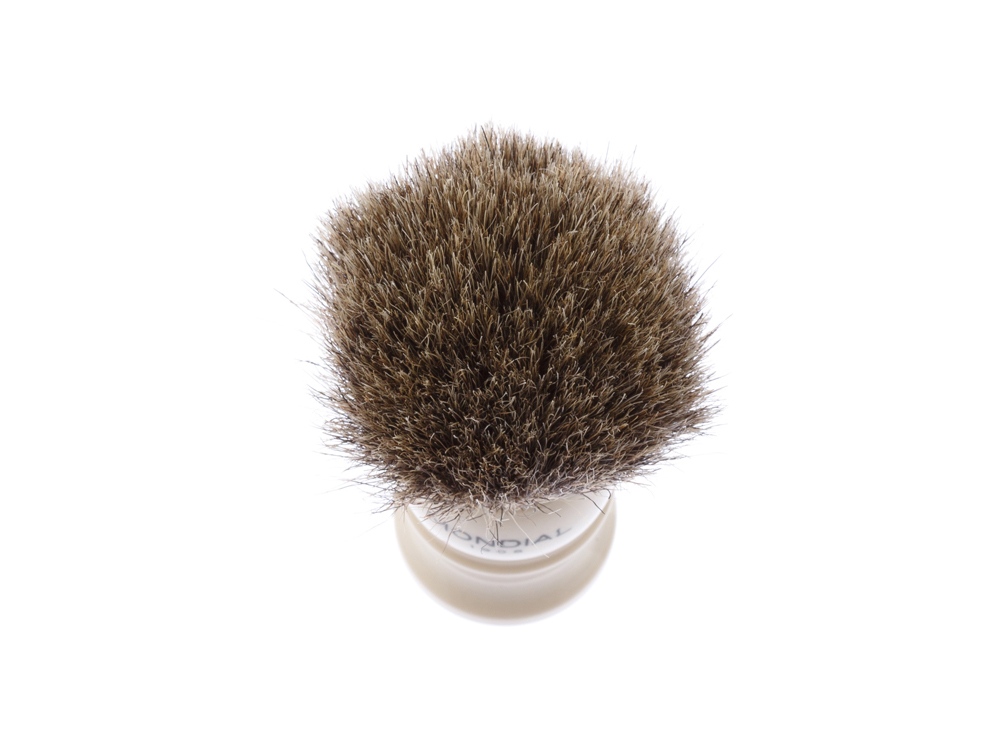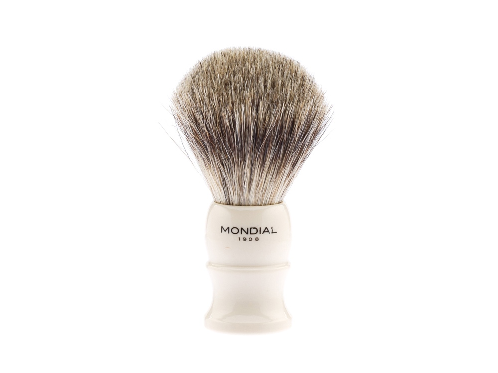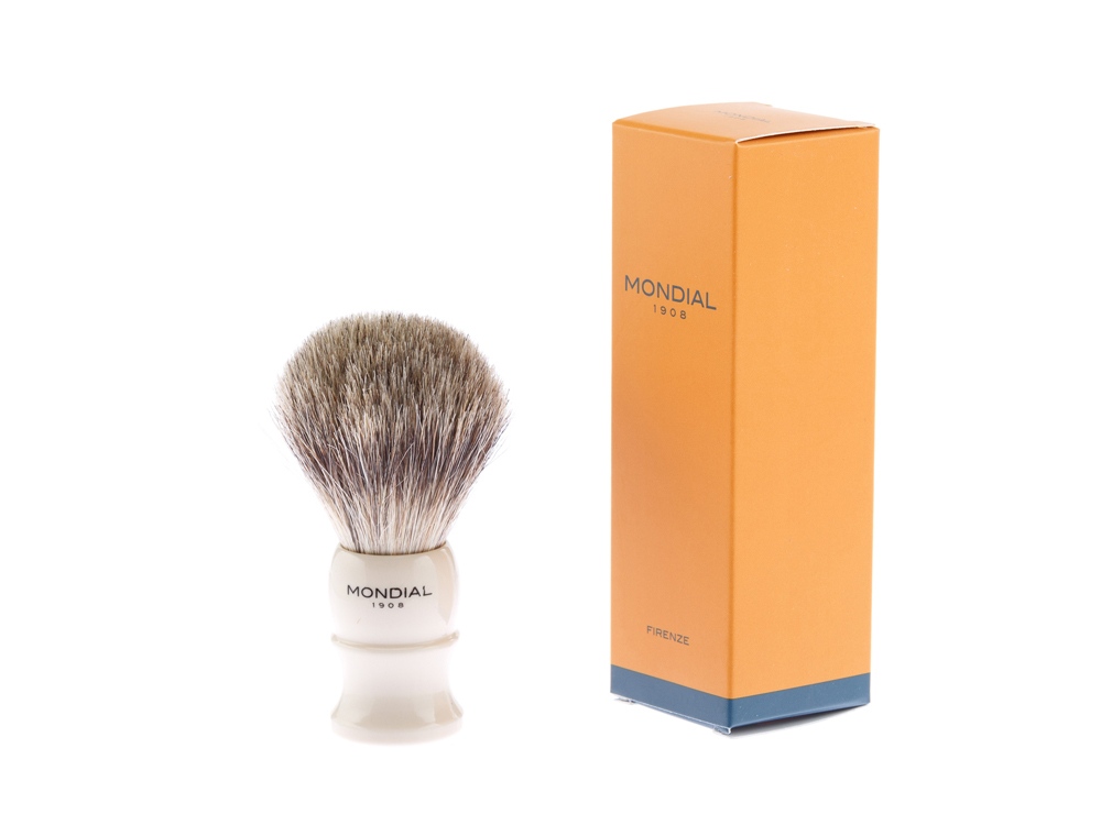 Ассортимент бритвенных аксессуаров MONDIAL является эталоном для всех видов бритья. Только лучшие материалы обретают форму в опытных руках итальянских мастеров. Помазок для бритья из лимитированной коллекции MONDIAL разработан лучшими итальянскими дизайнерами. В помазке идеально сочетаются высококачественная каучуковая смола и первоклассный ворс барсука. Кисть помазка изготовлена из барсучьего ворса категории Best Badger. Кисти этого типа взбивают отличную плотную пену, это возможно благодаря хорошей способности барсучьего ворса удерживать влагу. Исключительная мягкость барсучьего ворса не вызывает дискомфорта при нанесении пены даже у обладателей чувствительной кожи. Минималистичный, но элегантный дизайн помазка – уникальный в своем роде современный элемент роскоши, это возможность выйти за рамки моды для создания аутентичного итальянского стиля вне времени. Характеристики: Тип ворса: Натуральный барсучий ворс категории Best Badger Диаметр узла: 20 мм (размер M) Материал рукояти: каучуковая смола Размеры: высота помазка - 98 мм, высота рукояти - 45 мм, диаметр основания - 31 мм Вес: 42 гр.