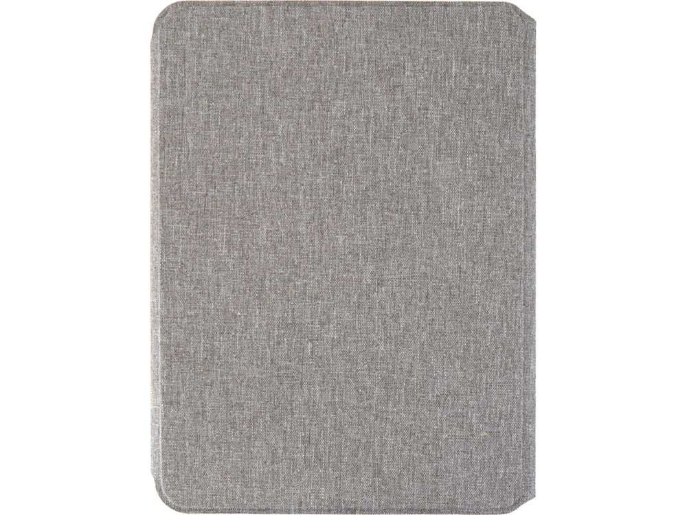Обложка портфолио A5 Andean изготовлена из переработанного полиэстера, сертифицированного RCS, что является экологичной альтернативой стандартным материалам. Изделие имеет гладкую серую обложку с закругленными углами, а также магнитную застежку, дополненную изысканной деталью из орехового дерева, что придает ему изысканный вид. Внутри блокнот в гибкой обложке с 64 листами бумаги 80 г/м2 кремового цвета в линейку. Поставляется в шубере из крафтовой бумаги