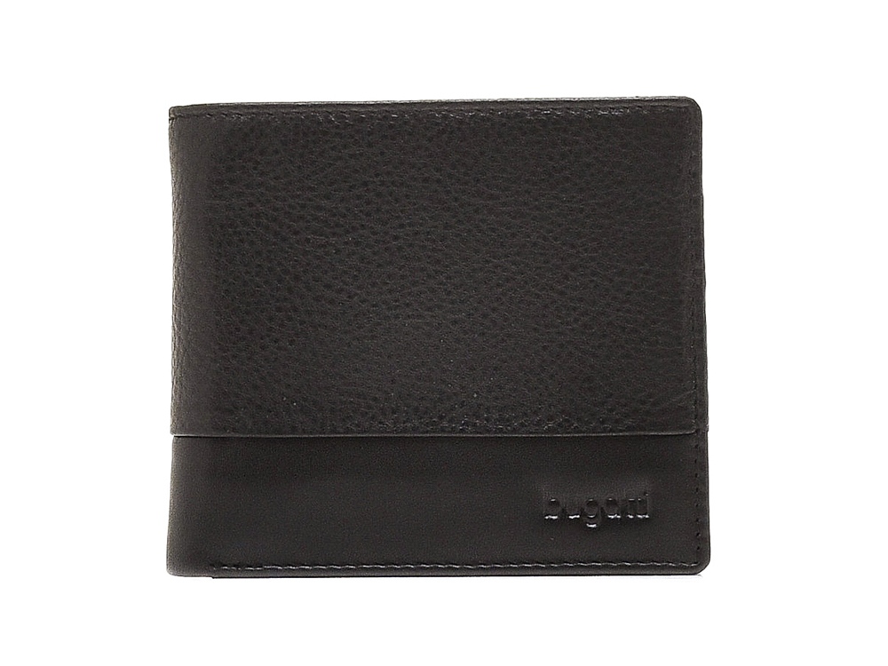 Портмоне BUGATTI Atlanta, чёрное, натуральная воловья кожа, 10,5х1х9 см