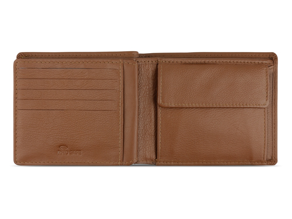 Портмоне BUGATTI Bomba, с защитой данных RFID, коньячного цвета, кожа/полиэстер, 12х2х9,5 см