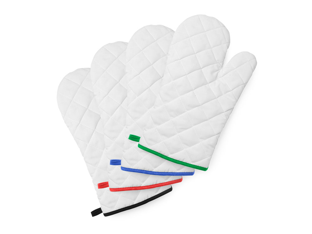Прихватка из полиэстера. Выполнена в белом цвете с цветными краями. Гладкая сторона идеально подходит для сублимации.