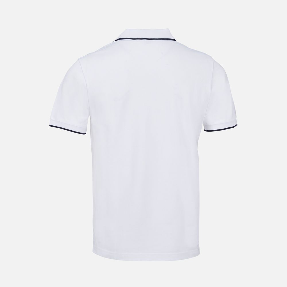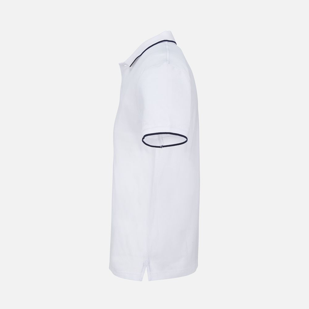 Рубашка поло унисекс Palermo, белая с темно-синим купить оптом и в розницу с нанесением логотипа в Воронеже