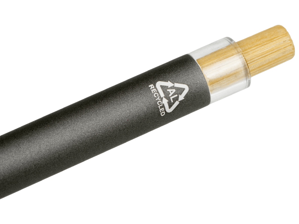 Экологичные материалы, использованные при изготовлении ручке Blossom от Savio, помогут многократно снизить вред окружающей среде: Корпус из переработанного алюминия делает Blossom надёжной и крепкой, позволяя использовать её дольше пластиковых ручек и снижает вред почве от добычи полезных ископаемых; Бамбуковая кнопка идеально подходит в качестве замены деревянной или металлической, ведь вырубка бамбука сказывается на природе значительно мягче и незаметнее; Кольцо сделано из RPET, а не обычного пластика, так как он не загрязняет окружающий мир, а продолжает приносить пользу. Немецкие чернила Dokumental обеспечивают мягкость и плавность письма. - экологичные материалы; - надёжный металлический корпус.