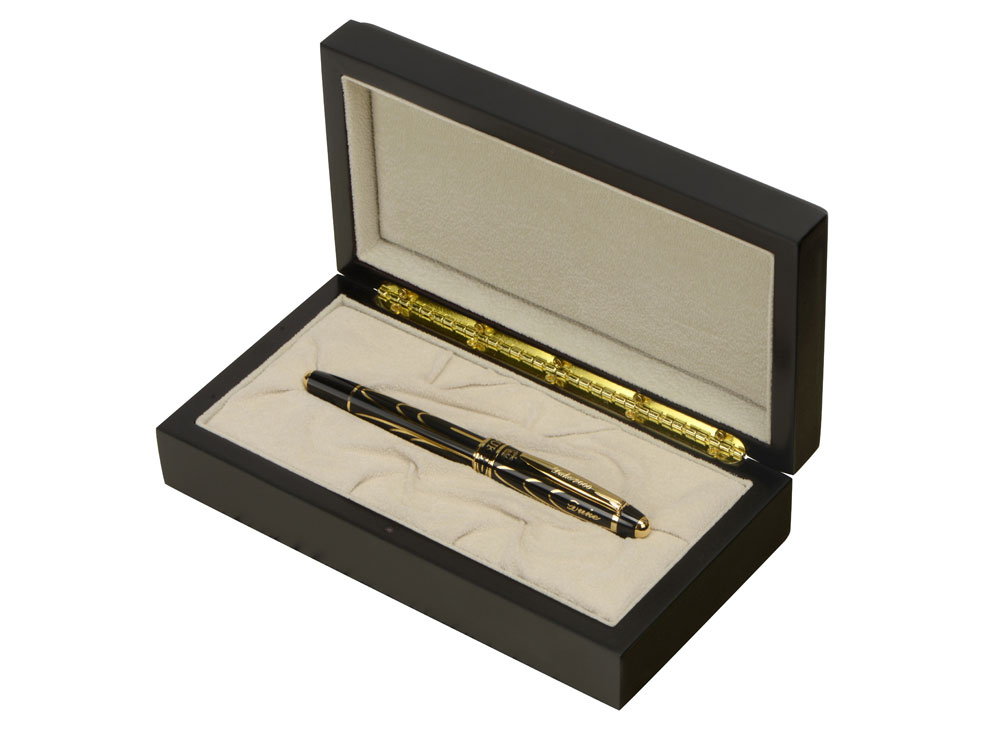 Во всем мире эта ручка считается ручкой монархов и правящих особ благодаря непревзойденному качеству, королевской отделке и необыкновенному футляру из ценных пород дерева.