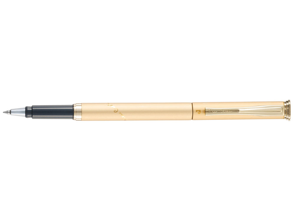 Ручка-роллер Pierre Cardin GAMME • Корпус - алюминий. Цвет - золотистый; • Отделка - сатиновое покрытие; • Детали дизайна - сталь/позолота; • Упаковка: - картонная коробочка черного цвета с картонным ложементом красного цвета. Размер 175 х 55 х 35 мм, вес 35 гр Комплектация: • Металлический роликовый стержень с логотипом Pierre Cardin на корпусе, с чернилами синего цвета; • Инструкция по использованию ручки. Экономичные ручки Pierre Cardin серии GAMME - прекрасное начало для больших дел! Большое всегда начинается с малого! Широкая гамма отделок и элементов дизайна, разнообразие форм и размеров, неповторимое сочетание стилей все это создает новый уровень элегантности по доступной цене.
