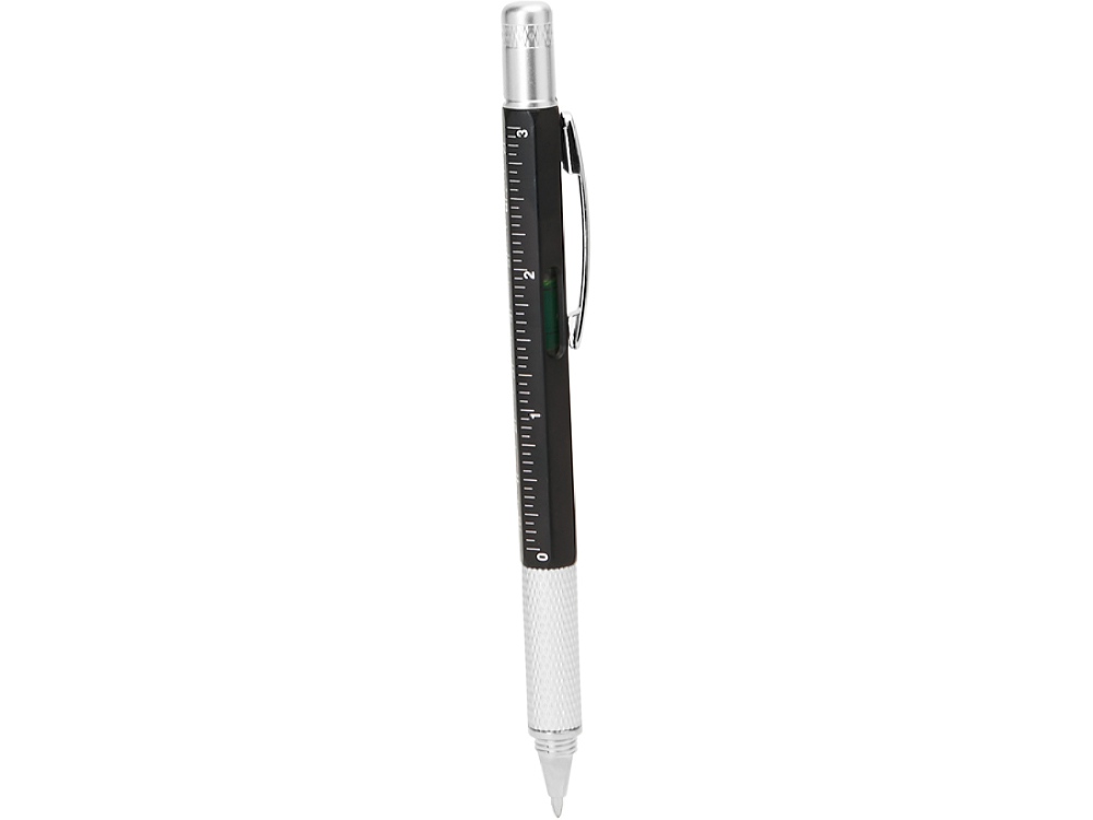 Многофункциональная ручка: уровень, сантиметровая и дюймовая линейка, плоская отвертка и звездообразная отвертка. Корпус доступен в различных цветах. Синие чернила.