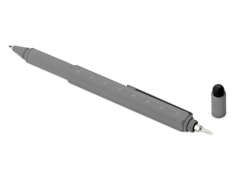 Ручка шариковая металлическая Tool, серый. Встроенный уровень, мини отвертка, стилус купить оптом и в розницу с нанесением логотипа в Воронеже