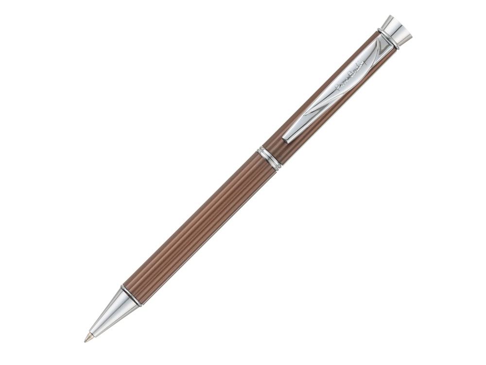 Шариковая ручка Pierre Cardin ROYAL • Корпус - латунь. Цвет - коричневый; • Отделка - глянцевое покрытие; • Детали дизайна - сталь; • Упаковка - картонная коробочка черного цвета с картонным ложементом красного цвета; • Размер упаковки -175 х 55 х 35 мм, вес 35 гр Комплектация: • Металлический шариковый стержень с логотипом Pierre Cardin на корпусе с чернилами синего цвета; • Инструкция по использованию ручки. Изысканные и необычные цвета, великолепный дизайн и роскошные материалы делают эту ручку по-настоящему королевской. Необычная форма корпуса добавляет роскоши вашему письменному инструменту. Ощутите комфорт и стиль в каждом слове с ручкой серии Royal.