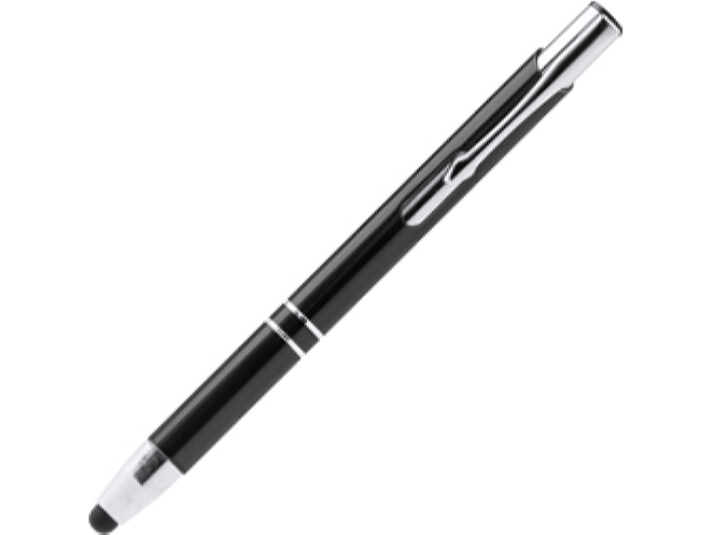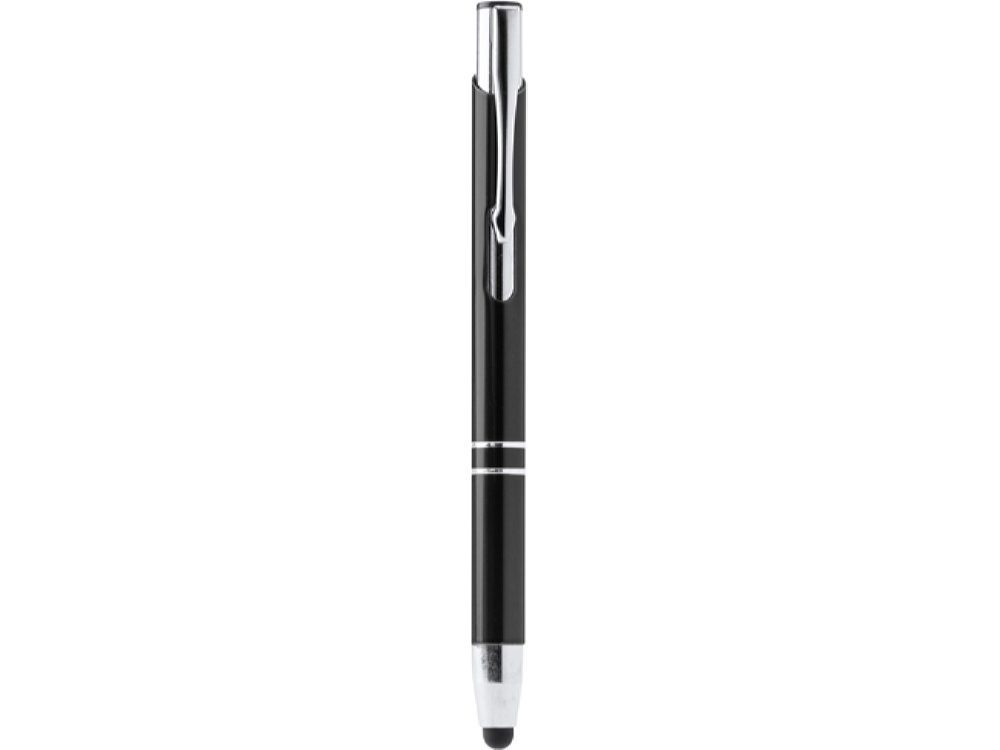 Шариковая ручка с алюминиевым корпусом и кнопкой с анодированным покрытием. Сенсорный стилус. Синие чернила.