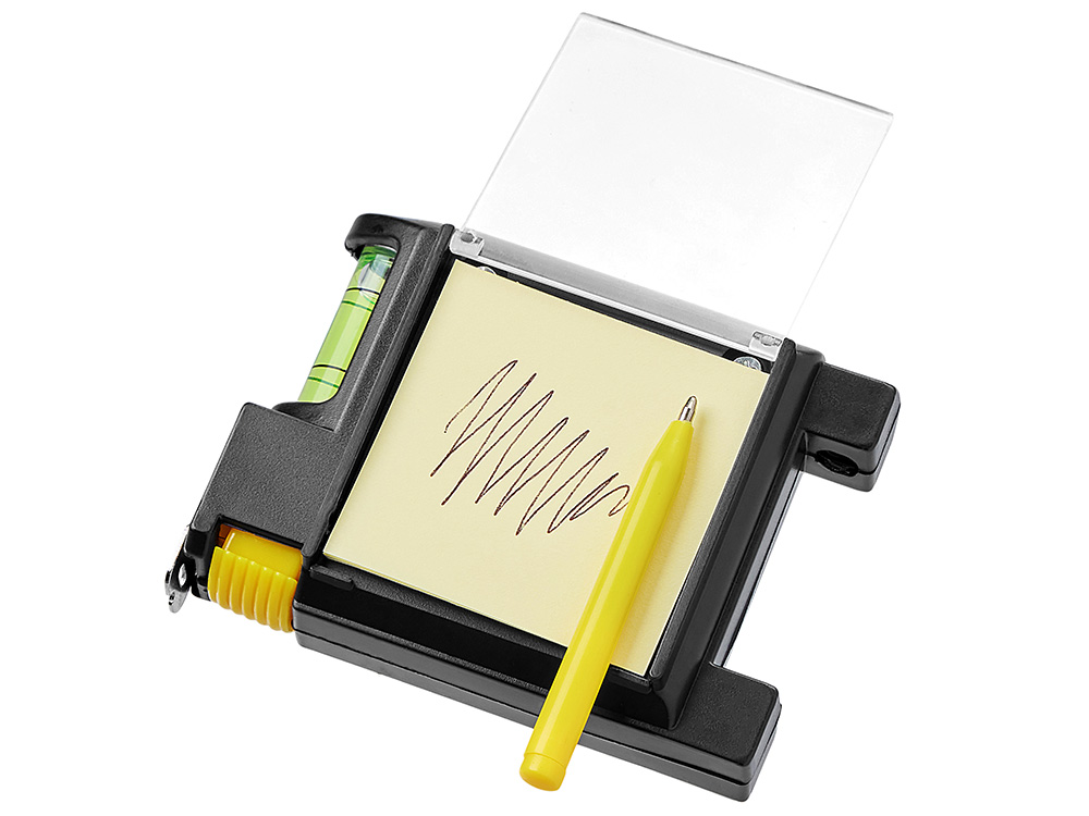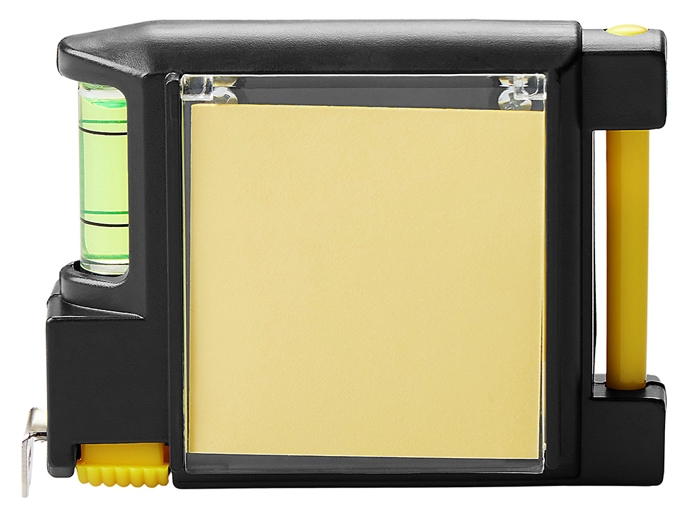 Компактная рулетка на 2 м с полезными функциями: - Блокнот и ручка для записей - Уровень - Клип для крепления к ремню