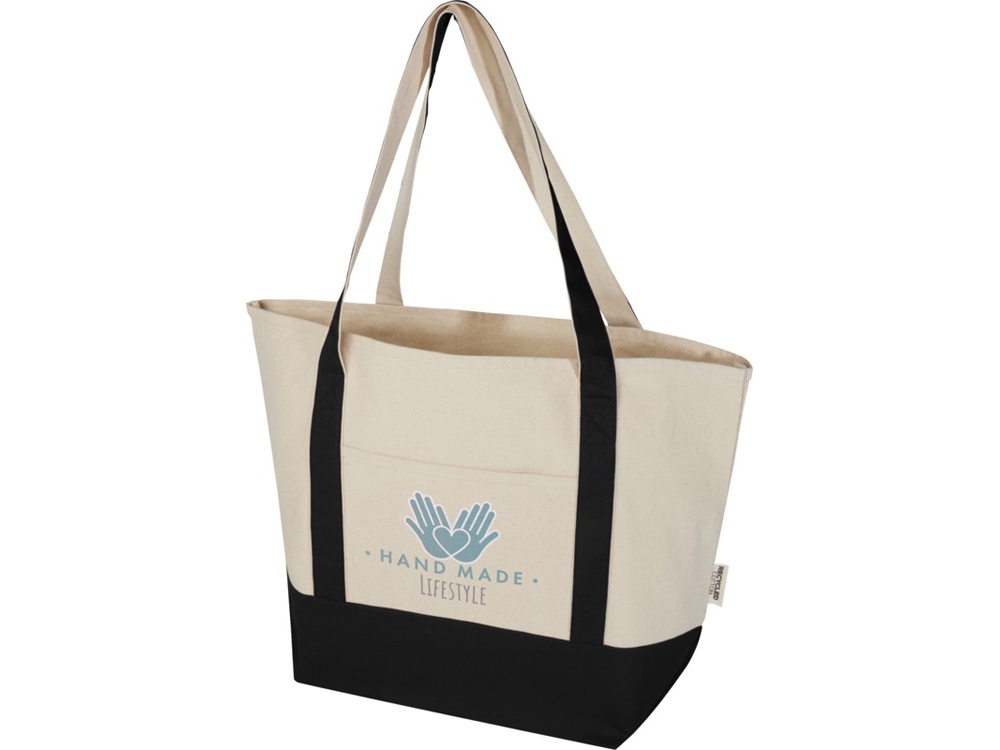 Эко-сумка Sam, изготовленная из 100% переработанного хлопка, сертифицированного согласно GRS, — идеальная сумка для пикника или похода за продуктами. Хлопок плотностью 320 г/м² делает эту сумку прочной и долговечной, а двойные ручки делают ее удобной для переноски тяжелых предметов в основном отделении. Длина ручек: 30 см. Выдерживает вес до 10 кг. Объем: 15 литр. GRS certified recycled cotton, 320 g/m2.