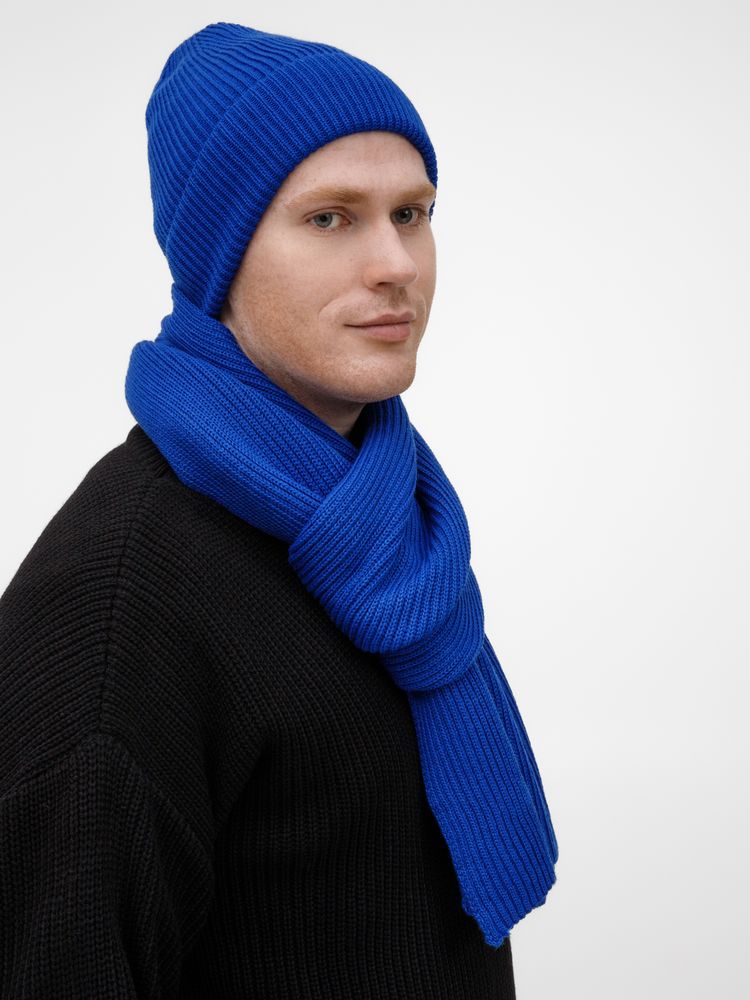 Удлиненный силуэт шапки Nobilis Mono из мягкой полушерстяной пряжи с широким отворотом создает стильный современный образ, а фактурная вязка добавляет объем и выразительность.