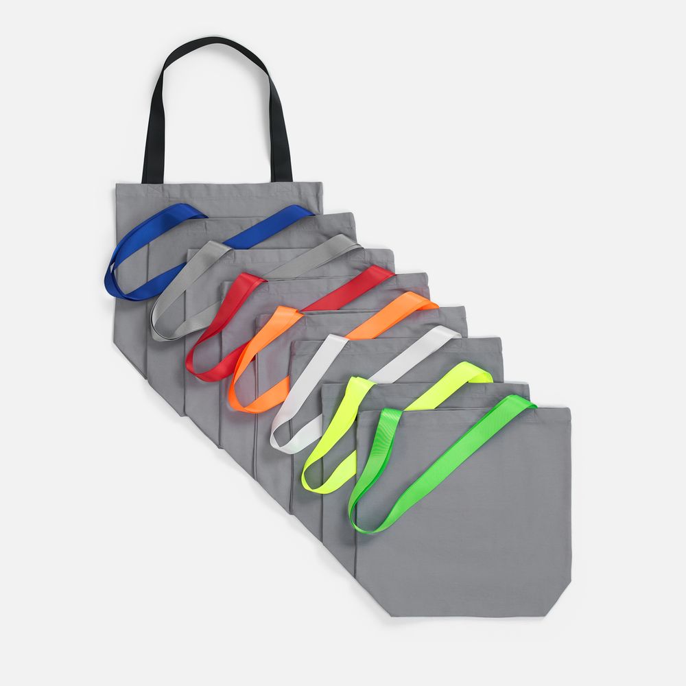 Шопер B5, серый с широкими синими ручками купить оптом и в розницу с нанесением логотипа в Воронеже