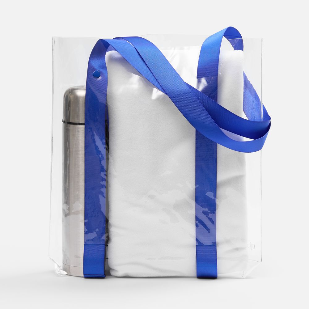 Шопер Clear Fest, ver.2, прозрачный с синими ручками купить оптом и в розницу с нанесением логотипа в Воронеже