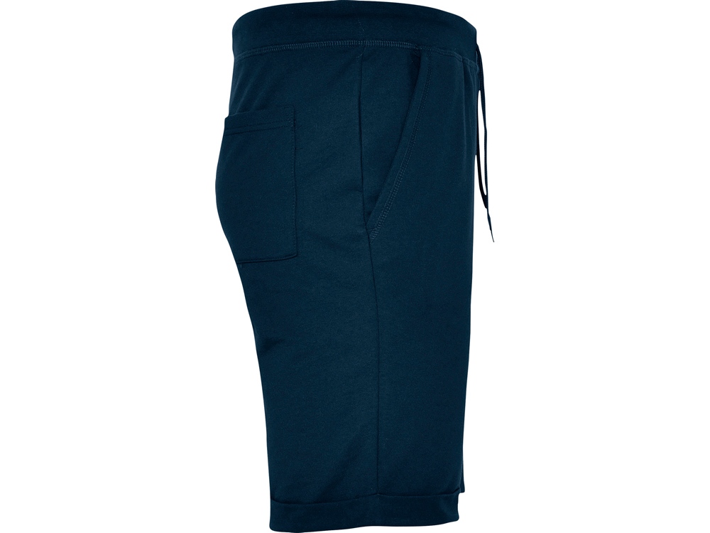 Спортивные шорты с широким эластичным поясом со шнуром для регулировки. Боковые карманы, задний карман и отвороты внизу с усиленными строчками.