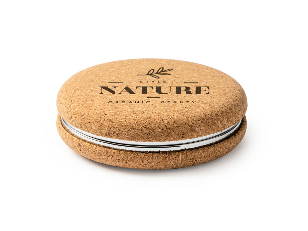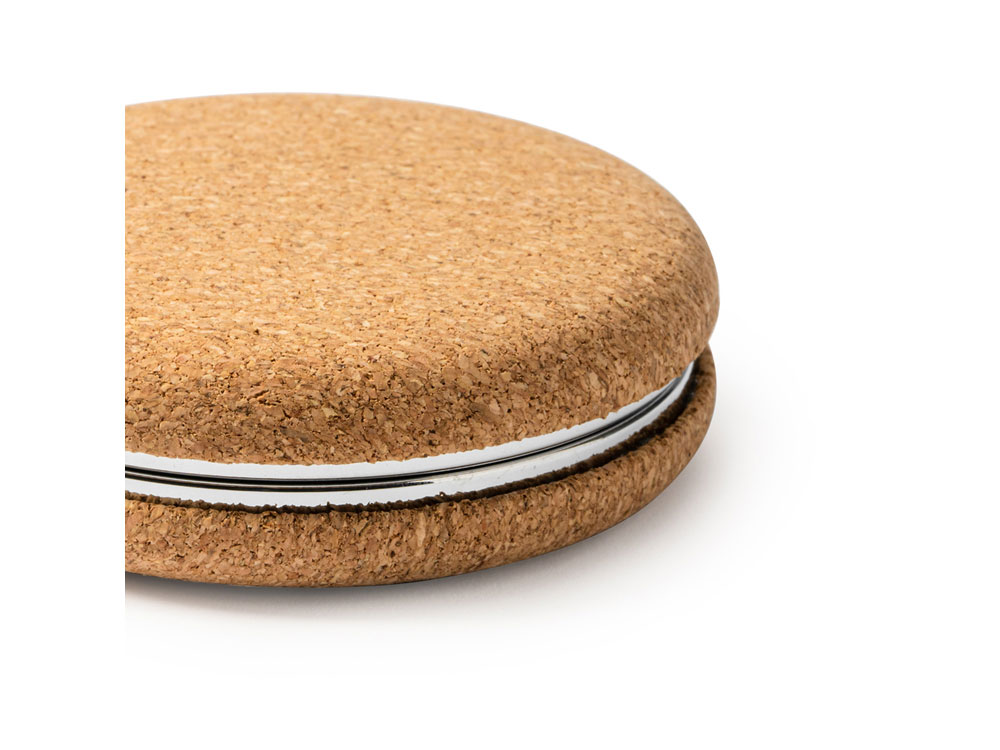 Складное зеркальце BELLE из натуральной пробки и хромированного металла купить оптом и в розницу с нанесением логотипа в Воронеже