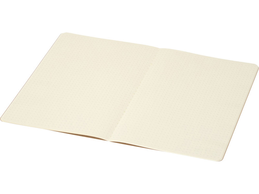 Блокнот Slyk формата A5 имеет минималистичную обложку из крафт-картона с закругленными углами и видимой строчкой на корешке, что создает ощущение ручной работы. Имеет 32 листа в точку кремового цвета, изготовленные из бумаги плотностью 70 г/м². Компактный формат A5 делает это изделие практичным вариантом для заметок на ходу, поскольку он легко помещается в большинство сумок. Также доступны варианты с разлинованными листами и листами для планирования дел.