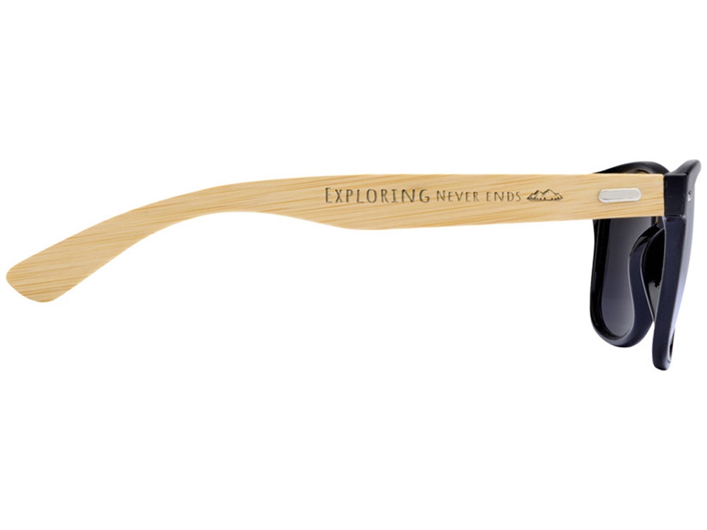Стильные солнцезащитные очки с цветными линзами и бамбуковыми дужками. Линзы УФ 400 обеспечивают защиту от вредного ультрафиолетового излучения. Соответствует стандарту безопасности ЕС EN12312-1. Бамбук, пластик PC.